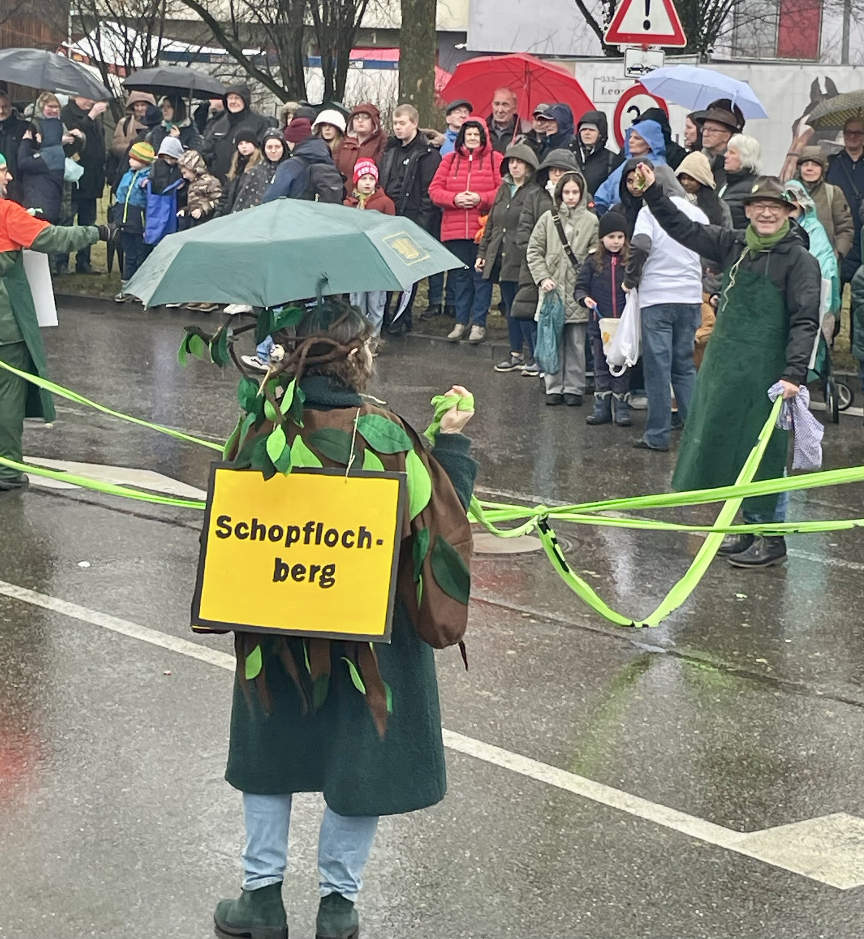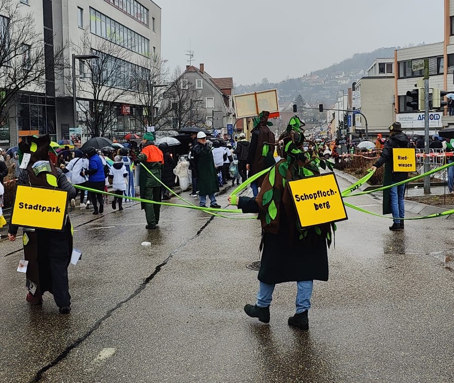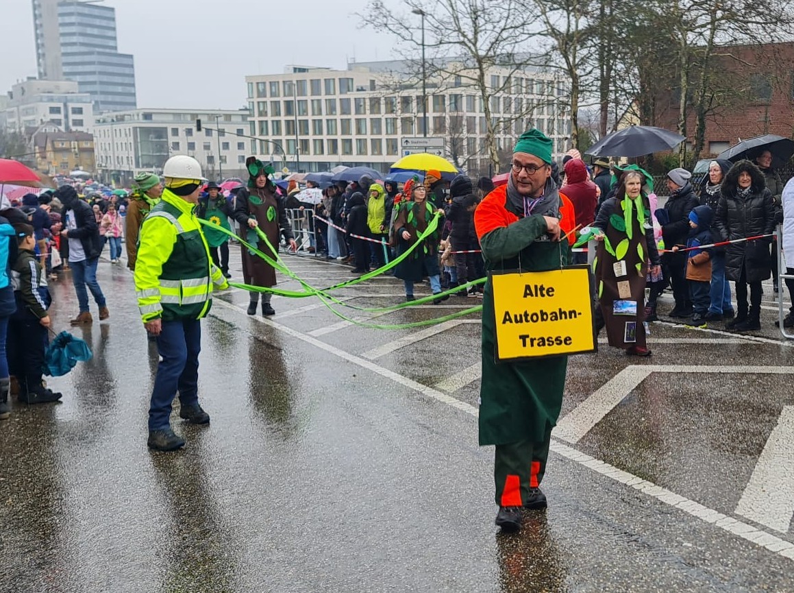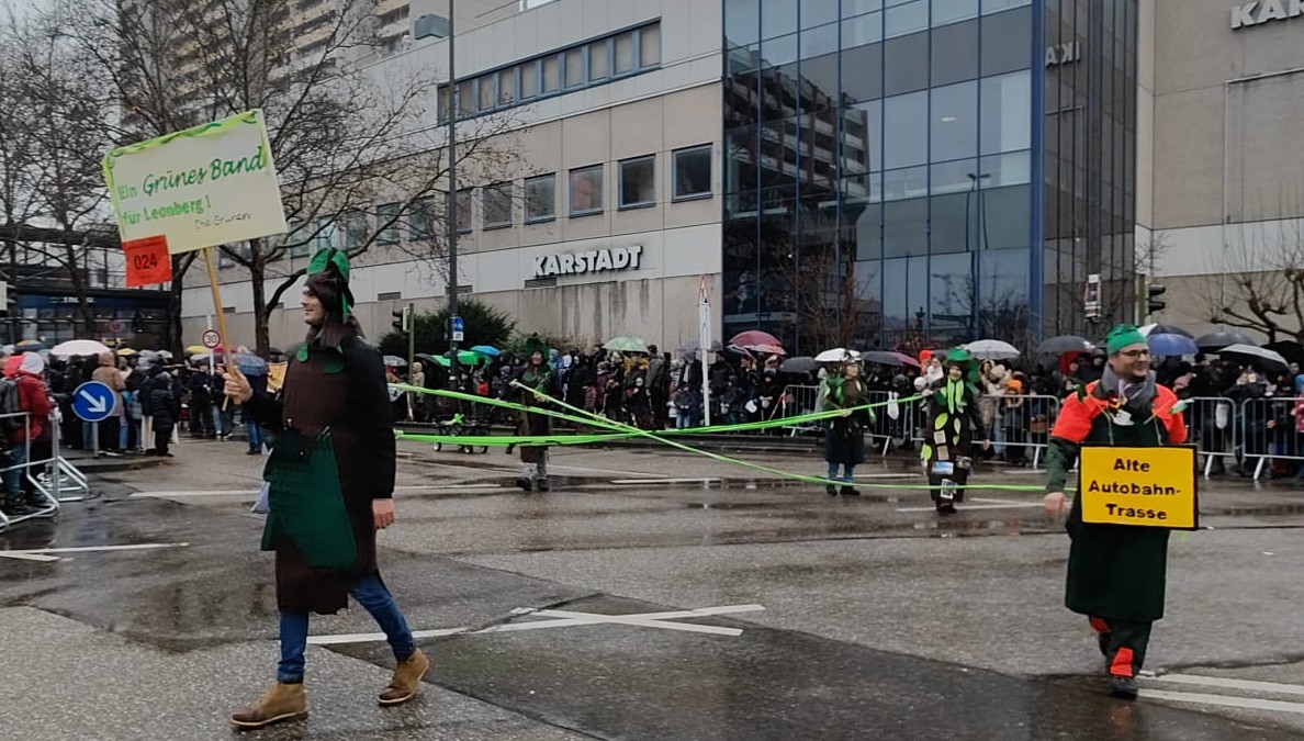 Der zweite Dienstag des Februars ist ja traditionell der Tag des Pferdemarktumzuges. Wettermäßig ist man dabei einiges gewohnt, ist das Datum doch mitten im Winter. Leider war es aber dieses Jahr so regnerisch, dass einem fast die Lust vergehen konnte. Aber zum Glück hielt das Wetter viele nicht davon ab, am Umzug teilzunehmen oder diesen anzuschauen. Die Grünen waren natürlich wie immer auch dieses Jahr dabei. Ein grünes Band für Leonberg war das diesjährige Motto. Symbolisch wurde es dargestellt mit den Grünflächen in und um Leonberg, die durch ein grünes Band verbunden sind.