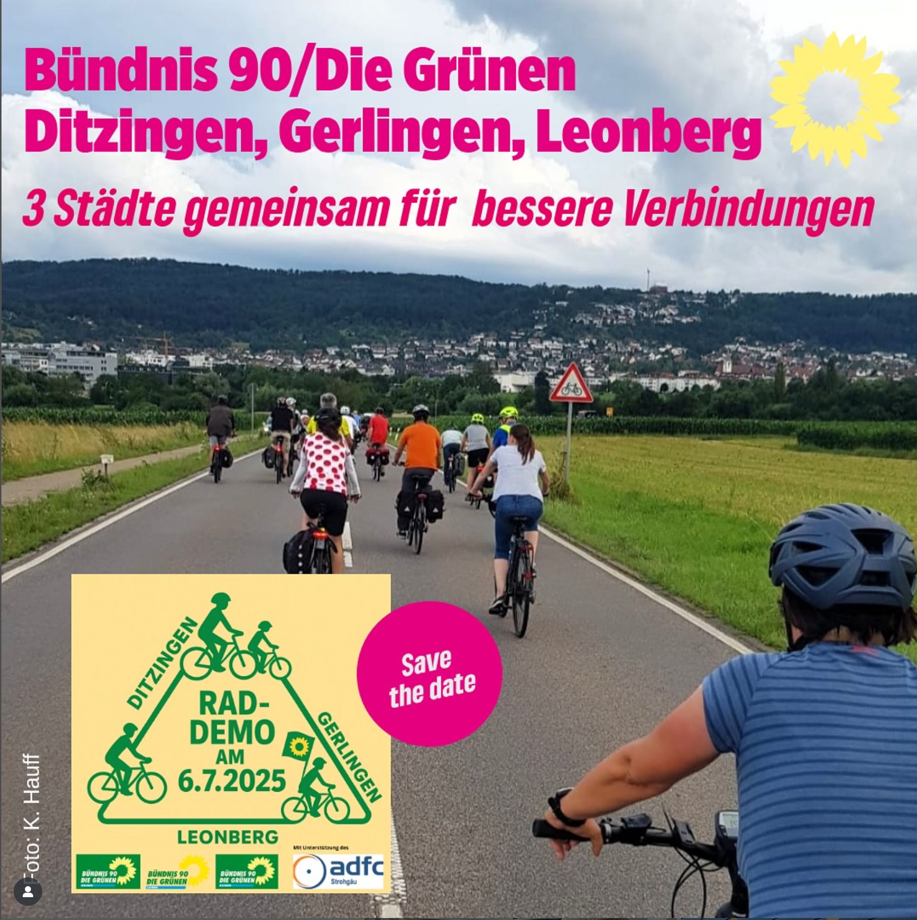 Am 6. Juli veranstalten die Ortsverbände von Bündnis 90 / Die Grünen von Leonberg, Gerlingen und Ditzingen eine gemeinsame Rad-Demo.